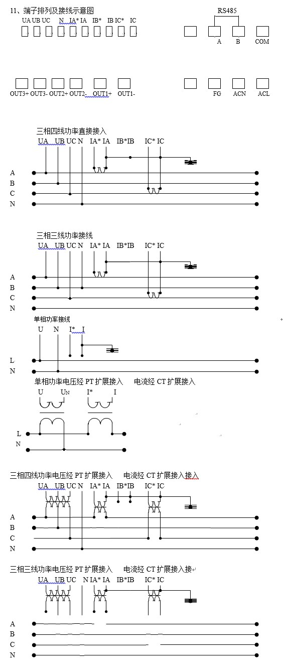 1、測量并以直讀方式顯示出用電線路中的單、三相有功、無功功率值。支持單相、三相三線、三相四線信號輸入方式。儀表既可作為一般的數(shù)顯有功、無功功率表使用,也可以通過安裝模擬量輸出模塊使其作為具有顯示一次回路測量值功能的有功、無功功率變送器使用,還可以選用RS485數(shù)字通信模塊作為具有顯示一次回路測量值功能的有功、無功功率數(shù)據(jù)采集器使用,也可以選擇繼電器輸出模塊作為常規(guī)有功、無功功率越限報警保護(hù)作用,也可以選擇將三個功能模塊同時選擇,使其集測量、報警、變送、通訊等眾多功能于一身。